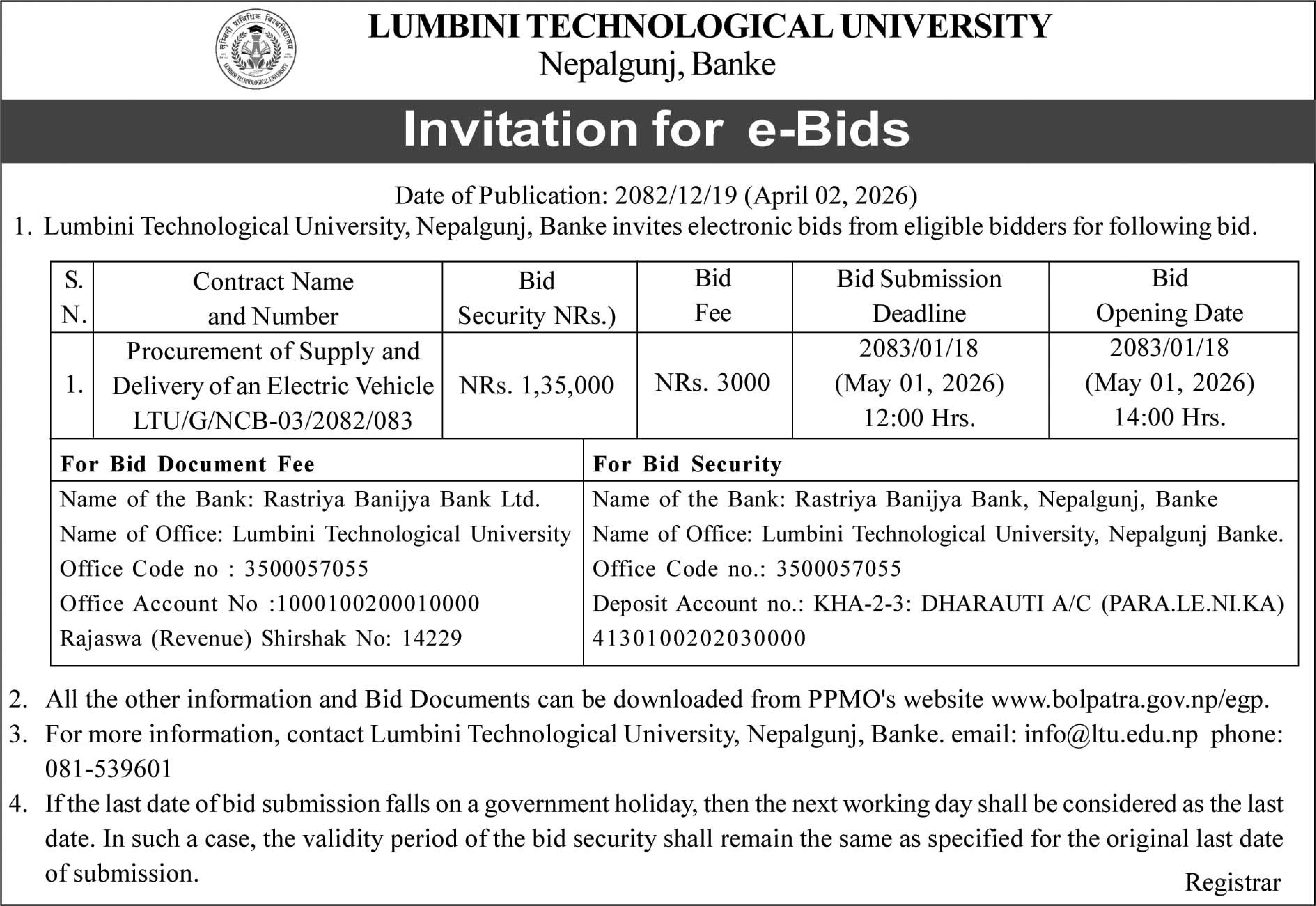 Invitation for e-Bids for Supply and Delivery of an Electric Vehicle