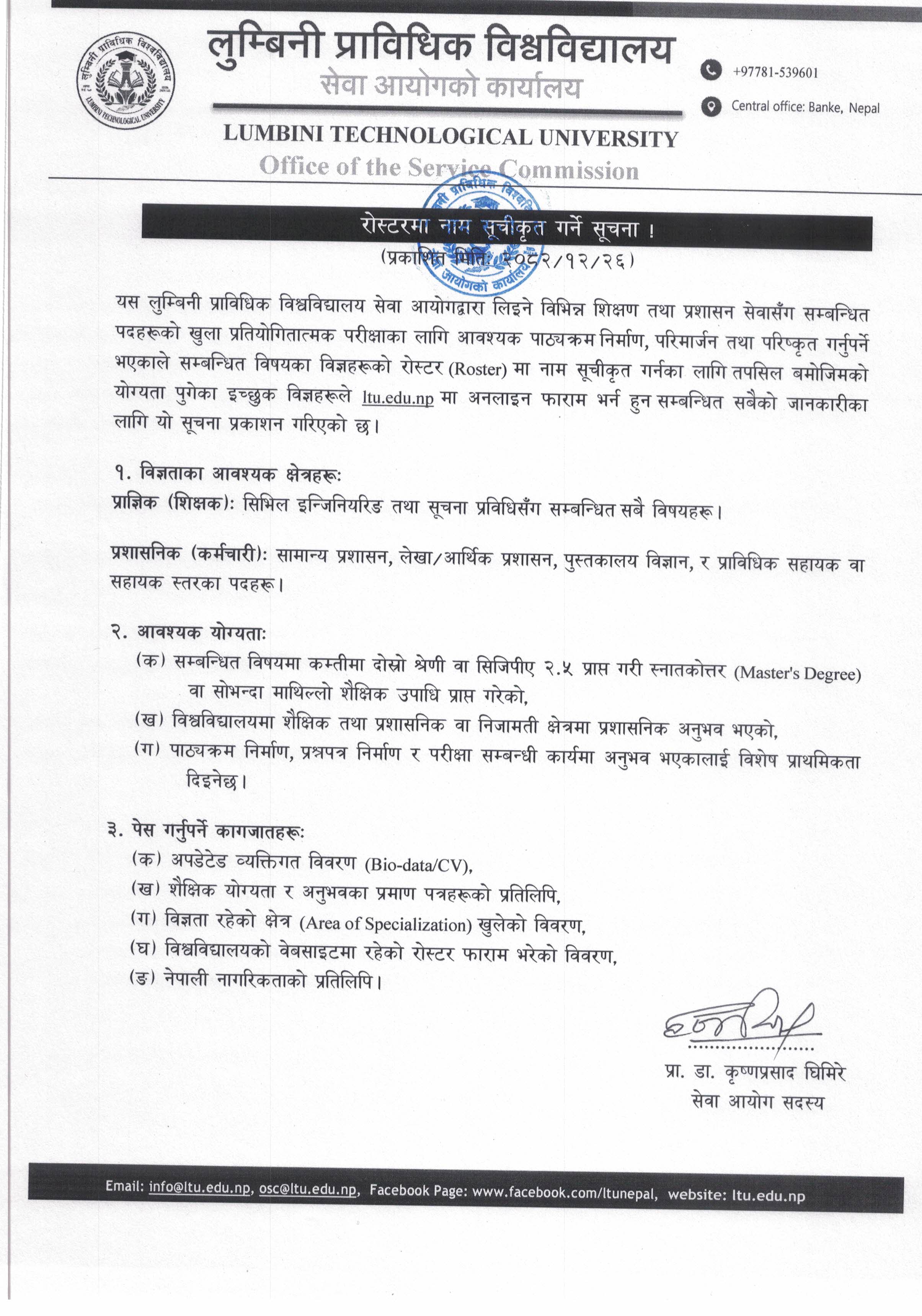 रोस्टरमा नाम सूचीकृत गर्ने सूचना !